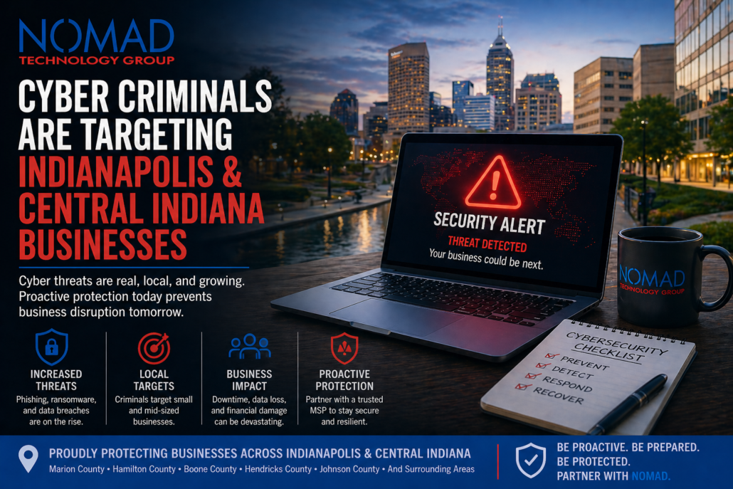 Nomad Technology Group helps businesses across Indianapolis and Central Indiana improve cybersecurity readiness.