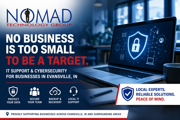 At Nomad Technology Group, we provide IT support to businesses throughout the Evansville area, and we consistently see the same misconception—small businesses believe they’re under the radar. In truth, they’re often the easiest and most profitable targets.